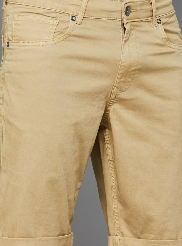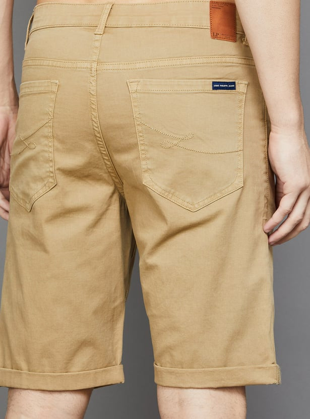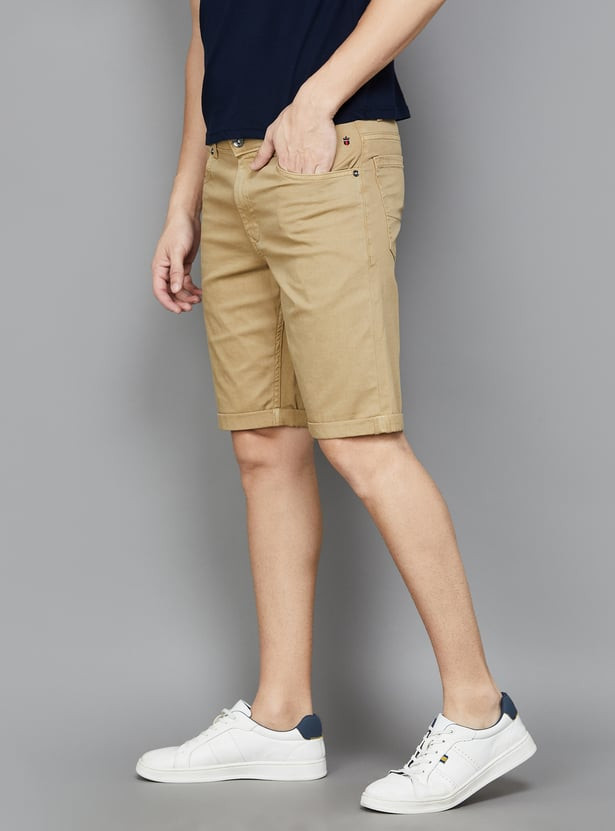 Step into these stylish 5-pocket shorts and let your fashion sense shine. Made from stretch solid denim, they offer a mid-waist that fits perfectly and a zip fly that glides effortlessly. The slim fit is designed to accentuate your silhouette beautifully.