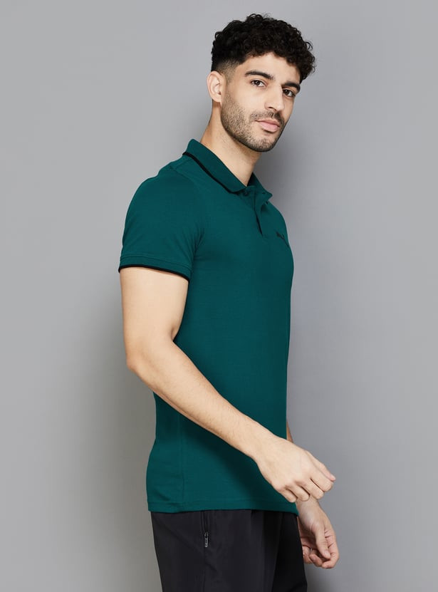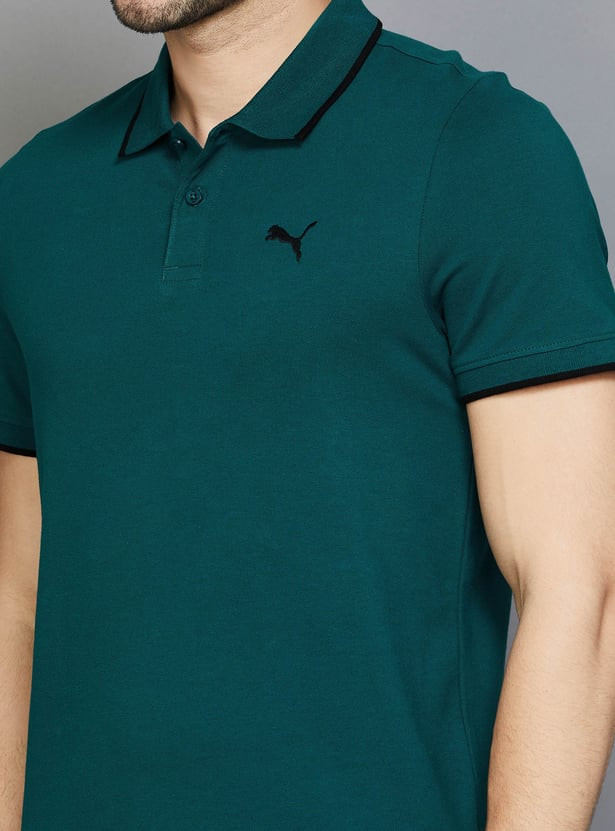 Designed with a solid fabric, this t-shirt features a polo collar, half sleeves, and button closure and is ideal to add to any wardrobe.