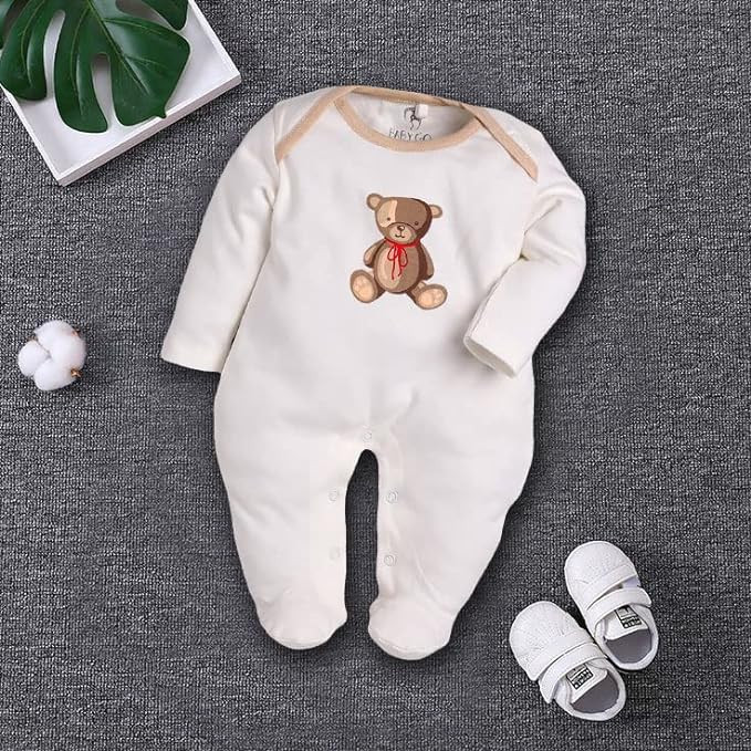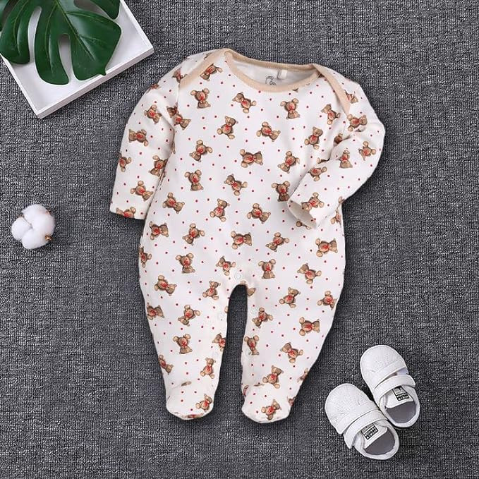 PURE COTTON PERFECTION: Our rompers are made from 100% pure cotton, ensuring the softest touch against your baby's delicate skin. We believe in providing nothing but the best for your little one, which is why we've chosen this natural and breathable fabric. Say goodbye to irritation and discomfort – our rompers are gentle and safe for daily wear. BREATHABLE AND STRETCHABLE: Parenthood is a journey filled with countless cuddles, giggles, and adventures. That's why we've ensured that our rompers are not only breathable but also stretchable. Your baby can move freely and comfortably, whether they're napping peacefully or exploring the world around them. Our rompers are designed to keep up with your little one's active lifestyle. SOOTHING COLORS FOR EVERY SOULS: We understand that every parent wants their baby to look as precious as they feel. That's why our rompers come in a palette of soothing colors that complement your baby's natural charm. From gentle pastels to vibrant hues, there's a shade for every mood and occasion. Dress your baby boy in dungaree-inspired rompers or adorn your baby girl in the loveliest dresses – our collection has something for everyone. SAFE FOR EVERY ADVENTURE: Parenthood is an adventure unlike any other, and we're here to ensure that your baby's clothing keeps up with every twist and turn. Our rompers are not only stylish but also designed with your baby's safety in mind. With secure closures and carefully stitched seams, you can rest assured that your little one is snug and secure in our rompers through all occasions.