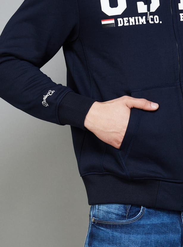 Stay warm by layering over this zip-through hoodie. It features a brand print on the front and ribbed cuffs and hem. A drawstring neckline makes sure you can tighten it up securing on chilly days.