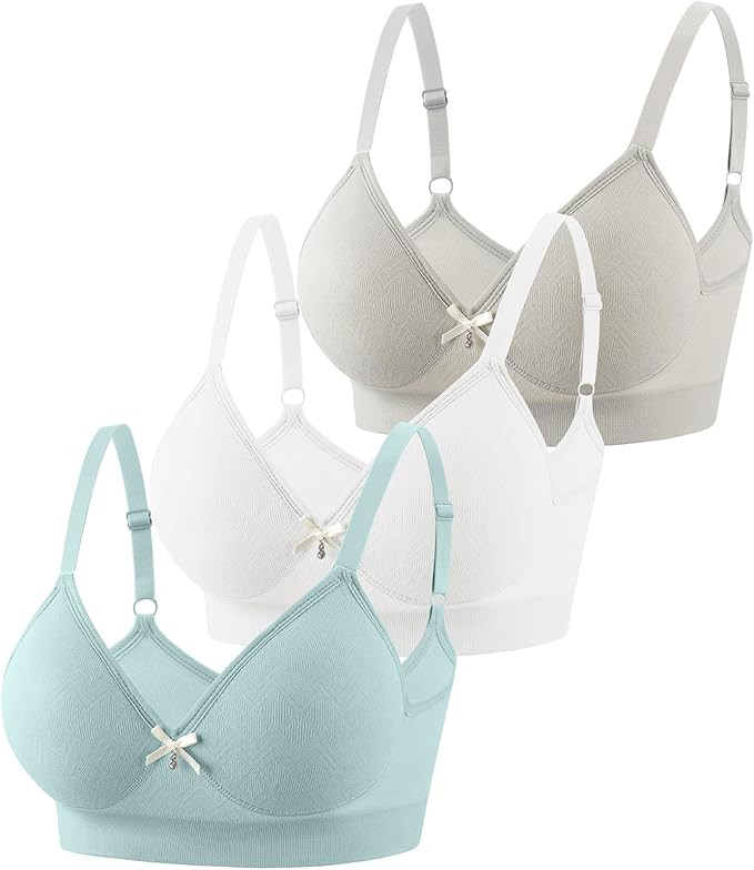 Eleplus 3 Pieces Deep V Wireless Bras for Women Seamless Comfy Bralettes Lightly Lined Multicolors Pack.