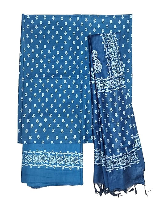 Each set comes with unstitched fabric for the shirt, trousers, and dupatta, allowing you to customize the outfit to suit your style. Use a gentle detergent and cold water to maintain the fabric's color and texture. Upgrade your wardrobe with our unstitched cotton suits and experience the perfect blend of style and comfort. Elevate your everyday look with our elegant suits and make a lasting impression wherever you go. Premium quality unstitched cotton silk fabric Available in a range of vibrant colors and designs