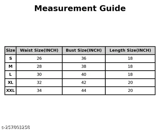 S (Bust Size : 36 in, Length Size: 18 in, Waist Size: 26 in)