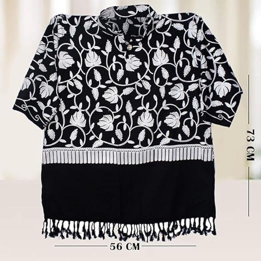 Showcases traditional kashmiri hand-embroidery techniques like detailed patterns like floral, sozni and paisleys, and geometric shapes stitching Suitable for various occasions, from casual outings to festive celebrations. Kashmiri embroidery kurtis blend tradition with contemporary style, making them a fashionable choice for many. Made from soft, breathable wool and loose fits make them comfortable for all-day wear