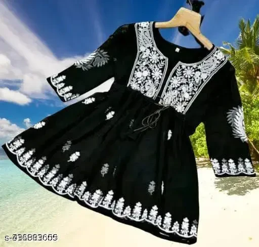 Add a touch of sophistication to your wardrobe with this black georgette kurti featuring elegant white embroidery. The three-quarter sleeves are perfect for transitioning between seasons, while the single combo ensures exclusivity. The embroidered pattern adds a luxurious feel, making it suitable for special occasions. Available in multiple sizes, this kurti is a must-have for those who appreciate fine detailing and a comfortable fit. Made in India, it reflects the country's rich textile heritage.