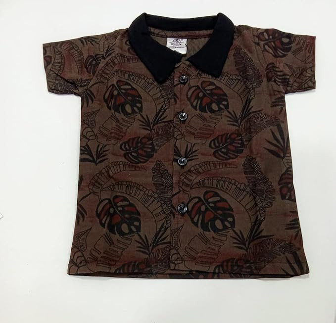 COCO TRIBE brown printed t shirt with black shorts is a very elegant but casual look. It has a black collar and botton down with half sleeves. (brown &black, excel) Comfortable Baby Clothes: The soft fabric used in this baby clothing set it’s perfect for any season. Item Dimensions LxWxH 18" 13" 18"