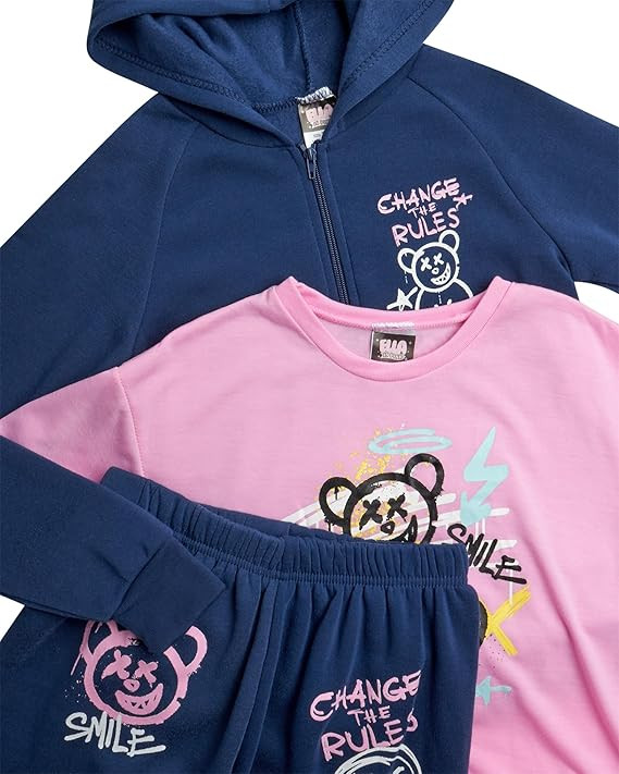VERSATILE 3-PIECE SET: This Ella in Pink girls' activewear set includes a cozy zip-up hoodie, a cute graphic tee, and matching jogger pants. Perfect for mixing and matching, this set offers endless styling possibilities for your little one's wardrobe. Whether she's heading to school, playdates, or just lounging at home, this set ensures she's always stylish and comfortable.