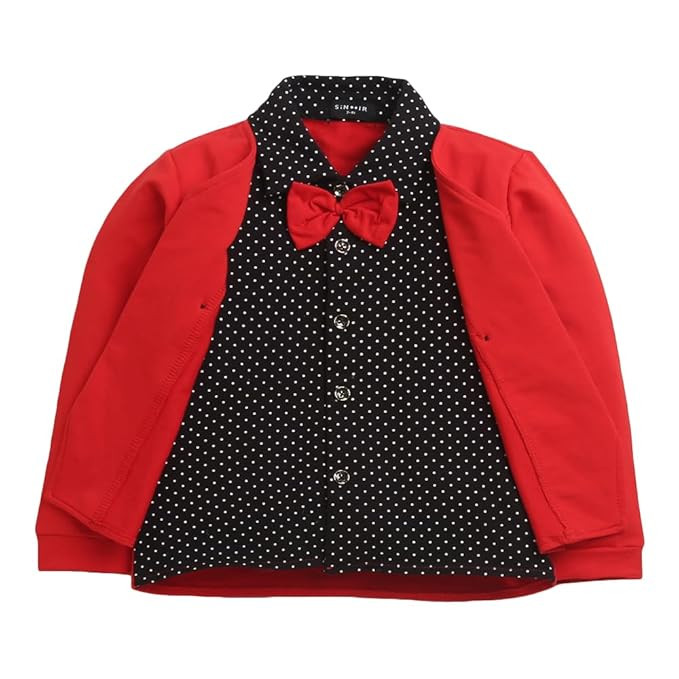 Material: 95% Cotton,5% Spandex Package Includes: 1 Shirt, 1 Pant, 1 Bow The actual product may differ slightly in color from the one illustrated in the images. Product Length: Waist Length All Dimensions are in cms :- Shirts: Chest: 64 cm , Length: 42 cm , Pants: Length: 54 cm , Waist: 44 cm