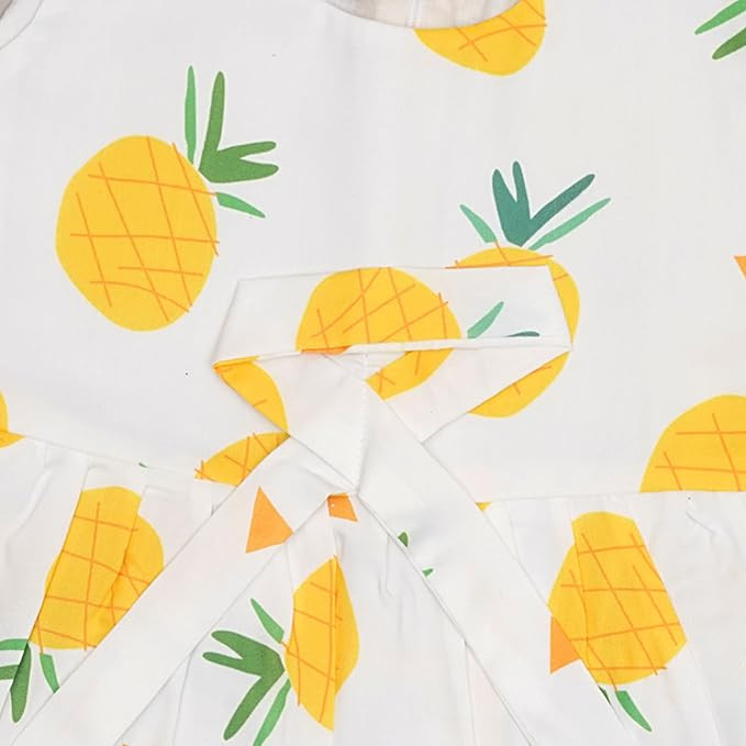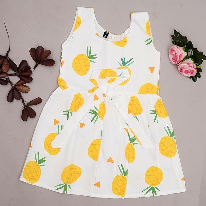 Soft and Comfortable : Made from premium quality, breathable rayon fabric that ensures maximum comfort for your baby's delicate skin. || Care Instructions: Hand wash preferrable, as contains 85% cotton and 15% polyster. Adorable Design: Features cute and attractive , colorful fruit printed designs that are perfect for everyday wear or special occasions. Versatile Use: Great for both casual outings and formal events, providing style and comfort. Perfect Fit: Sleeveless and knee length frock, Available in multiple sizes to ensure the best fit for babies of 1 to 6 years.|| There is Light color change variation due to photographic effect. Sizes available: Age : 1-2 Year - Bust : 10.5” , Length : 20” (All Size in Inch) 3-4 Year - Bust : 11.5” , Length : 23” (All Size in Inch) 5-6 Year - Bust : 12.5”, Length : 26” (All Size in Inch) Please Allow Slight 1-3cm Difference Due To Manual Measurement And If Your Kid Is Chubby, We Recommend Choosing A Larger Size, Thanks.