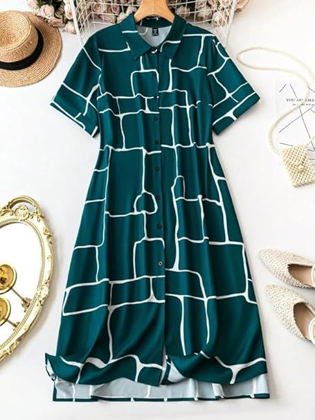 SOFT BLEND ELEGANCE : This women dress is crafted from a soft rayon blend with a Geometric, All Over Print & a perfect beach wear dress for women. STYLE & LENGTH : This women western wear features a standard length, a front-open collar, and stylish front buttons. VERSATILE : This women one piece dress is perfect for party dress, office, nights out, beach, hangouts, picnics, vacations, haldi & mehndi functions, & birthday parties. COMFORTABLE: Embrace summer style with our beach outfits for women, which is designed to keep you cool & fashionable in the warmer months. SIZE CHART RECOMMENDATION: Refer to the infographic size chart for your perfect fit; we recommend size large for comfort.
