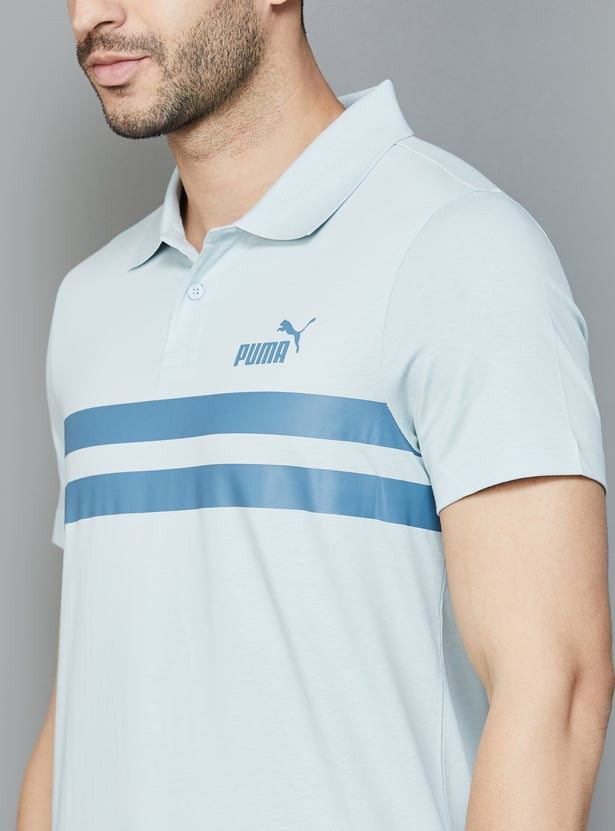 Designed with a striped fabric, this t-shirt features a polo collar, half sleeves, and button closure. It is an ideal addition to any wardrobe, enhancing your overall look and providing versatility for various ensembles.