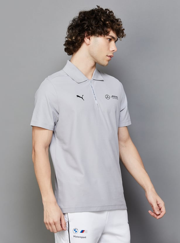 Inspired by the best performers in nature, the Mercedes-AMG Petronas Motorsport collection combines clean, organic designs with vibrant highlights and contouring graphics. Featuring a regular fit, polo collar with zipper closure, and color pop detail on the sleeve, this unique collection offers a blend of style and performance. Perfect for fans and enthusiasts alike.