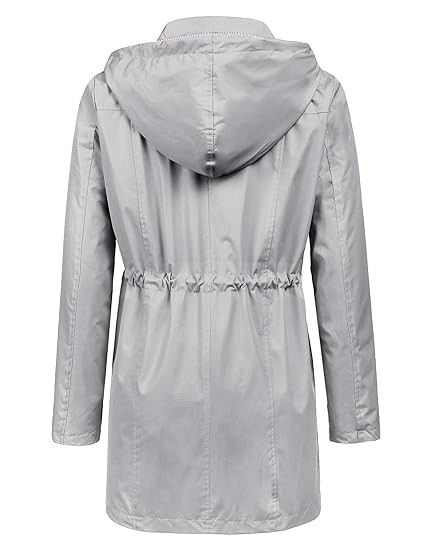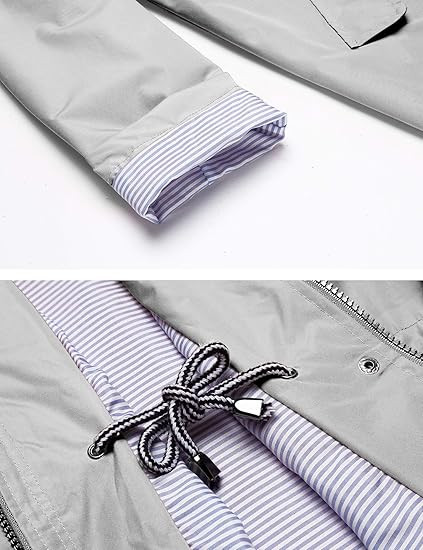 MATERIAL: 100% Polyester Waterproof Material With Striped Cotton Lined, Breathable, Soft Touch, Windproof, Easy To Package. DESIGN: This Women Rain Jacket With Attached Hood, Drawstring Waist Design. Solid Pattern, Sun Protection And Waterproof Function, Breathable, Skin-touch, Quick-drying, Lightweight Casual Fit, Front Pocket Decoration, Suitable For All Seasons. OCCASION: Suitable For Hiking, Climbing, Traveling, Camping, Sports, Outdoor, Easy To Quick-drying When It Is Light Rain Or Snow And Wind. SIZE:Please Check Our SIZE CHART Picture In the Left Or Detailed Size Info Below In Product Description Carefully.If You Have Any Question About Size, Just Contact To Us, We Will Try Our Best To Help You Get A Wonderful Shopping Experience. GARMENT CARE: We Recommend You Washing By Hand Or Machine Wash On Gentle Cycle, Dry Clean, Do Not Iron, To Protect Waterproof Material Performance.