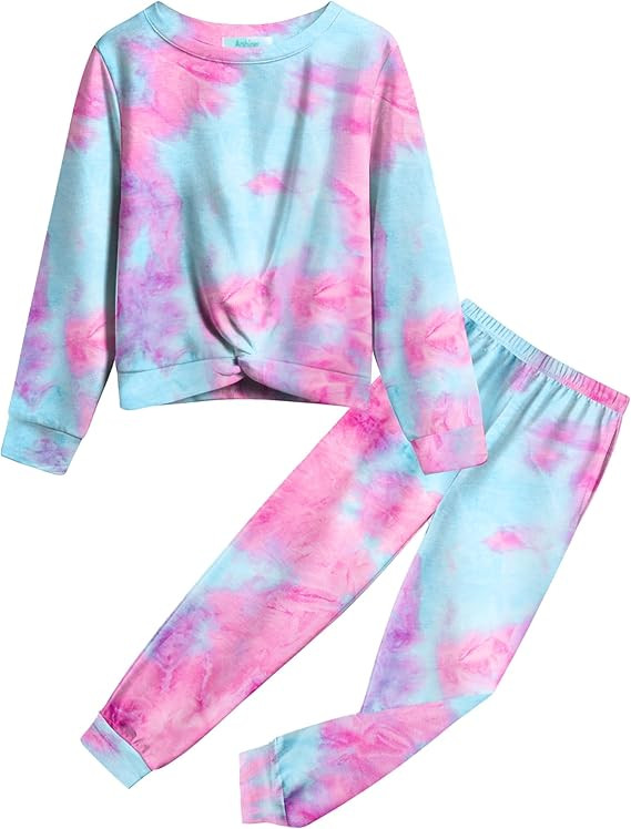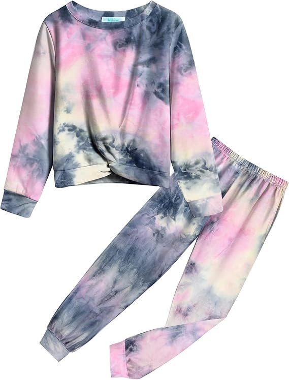Unique Design:Girls tie dye tracksuit sets/Plaid outfits for Girls/High waist jogger sets/Cozy lounge wear/Long pants jogging suits/Striped sweatsuit for Girls/Active wear outfits for girls/Casual crew neck matching sets/Long Sleeve pullover tops/Tie dye tracksuit sets for sports/Tie dye outfits for girls/Girls sweat suits