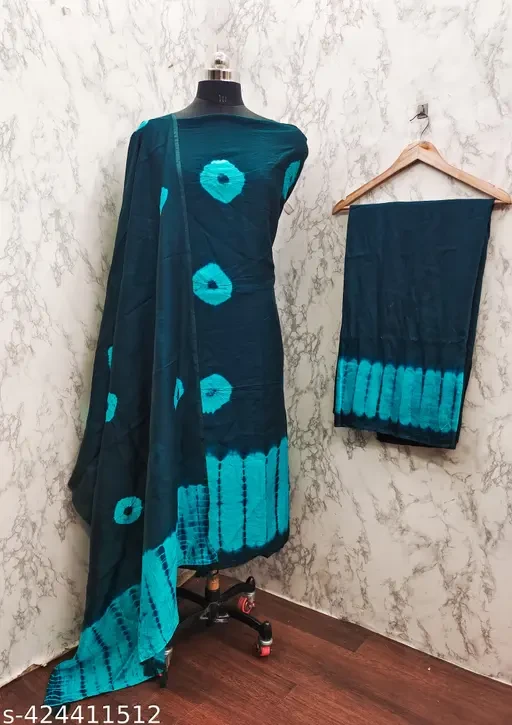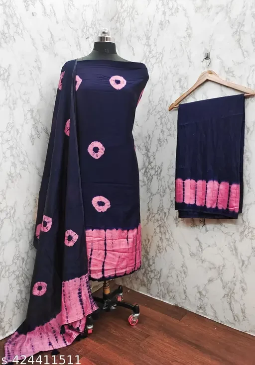 Name : AMOUS Unstitched chanderi cotton shibori bandhani suit Materiai