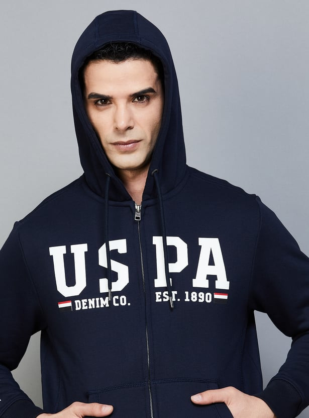 Stay warm by layering over this zip-through hoodie. It features a brand print on the front and ribbed cuffs and hem. A drawstring neckline makes sure you can tighten it up securing on chilly days.