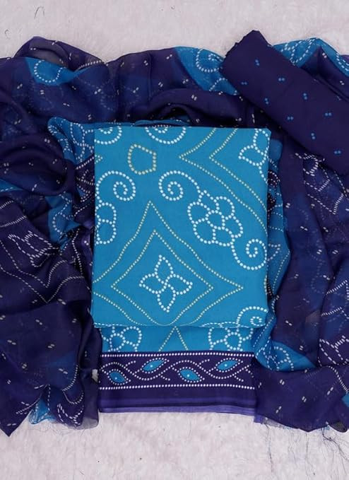 ||Material:-Crepe||Pattern:Bandhani||Color:- Sky Blue|| Top:- Crepe, Bottom:- Crepe, Dupatta:- Chiffon Enhance your wardrobe collection by adding this unstitched salwar suit dress material with dupatta.||Occasion-Party||Wedding|| Traditional Wear|| Daily|| Evening|| Office Wear||Festival Wear|| Unique features: Beautiful Winter & Summer collection, Fine quality winter &Summer wear Salwar Suit fabric for women/Girls.Step out in style by wearing this unstitched salwar suit dress material with dupatta. The images shown are for representational purposes only. Please note that the color of the product may slightly vary in comparison to the picture shown on the website due to various reasons which may include different lighting and devices during photo-shoot and also the color settings and resolution of your own monitor screen.