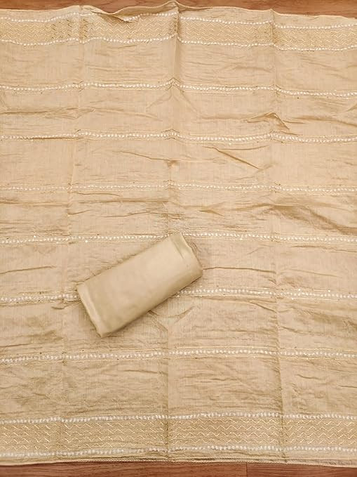 Top Fabric: The dress material features 1.90 meters of Chanderi fabric for the main garment. Bottom & Inner: Included are 3.80 meters of Shantoon fabric for both the bottom and inner layers. Dupatta: A Chanderi dupatta measuring 2.10 meters, matching the top fabric. Work: The ensemble is adorned with intricate embroidery work, adding elegance and detail. An ideal choice for customization, providing the foundation for a stylish outfit
