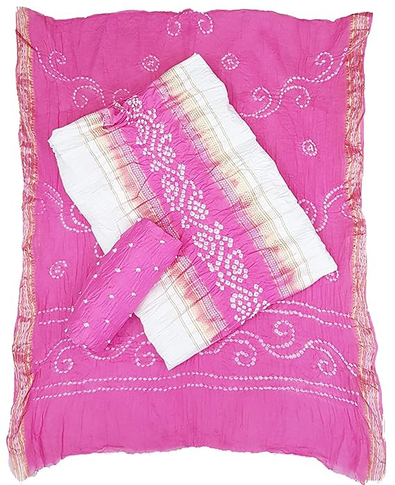 Women's Cotton Silk Unstitched Rajasthani Bandhani Dress Material Free Size