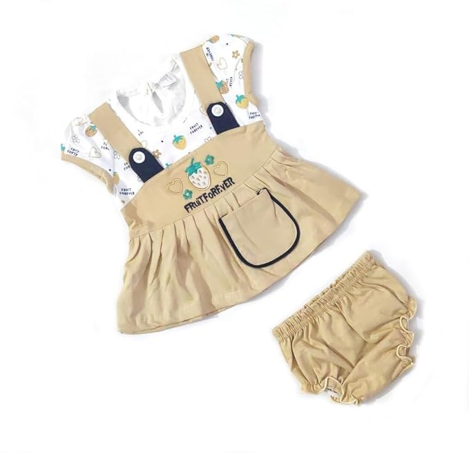 Sevgi Baby Girl's Pure Cotton Embroidered Over-All Printed Frock