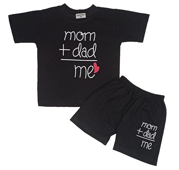 'Mom+Dad' - 'Smile' - 'D7' Text Printed Cotton Baby Black Clothing Sets/Tshirt-Shorts 3 different designs (Boys/Girls Born Baby to 6 Years)