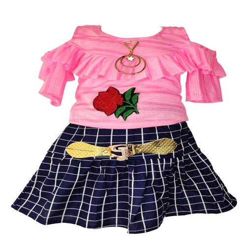 Hopscotch Girls Cotton Blend Skirt Set In White Color For Ages 9-12 Months