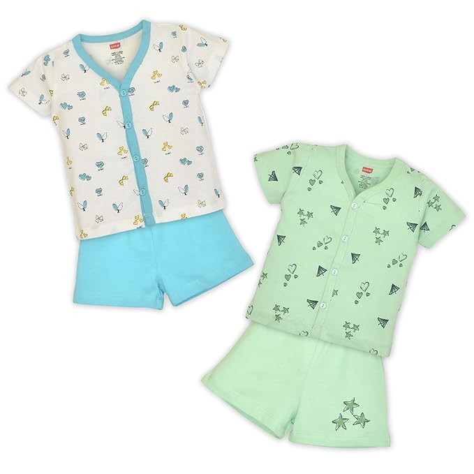 LuvLap Baby Boy and Girl Half Sleeve Jhabla & Shorts Pack of 2 Set