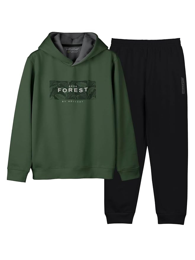 HELLCAT Printed Cotton Blend Full sleeve Hoodie T-shirt Jogger Trackpant Clothing Set for Boys
