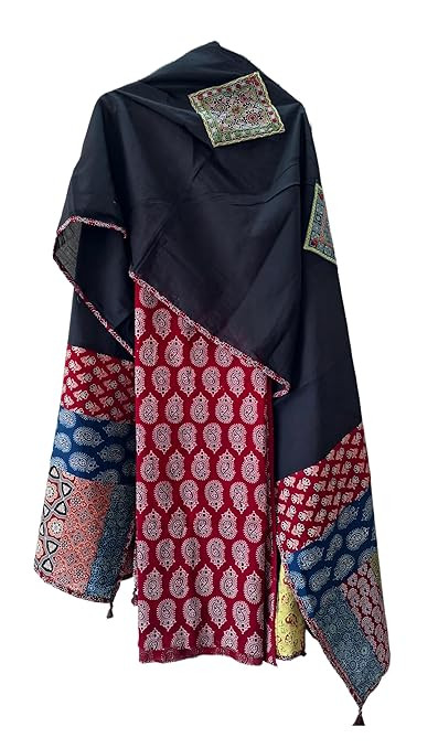 Ajrakh Print Pure Cotton Dress Material with Exclusive Hand stitched Patch Work Heavy Dupatta (Without Bottom)