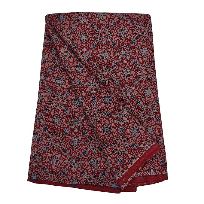 Ajrakh Beauty: Authentic Unstitched 100% Cotton Fabric - Mesmerizing Designs, Lively Colors - Ideal For Shirt, Kurta, Shalwar, Gown, Suit, Blouse, And Palazzo Pants