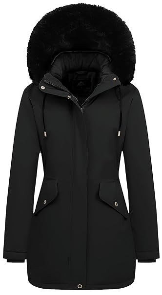 Women's Long Winter Down Coat Thicken Fleece Lined Parka Warm Puffer Jacket With Faux Fur Detachable Hood