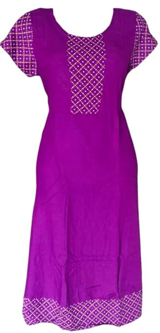 Purple Embroidered Cotton Dress, Cap Sleeves, Ankle-Length