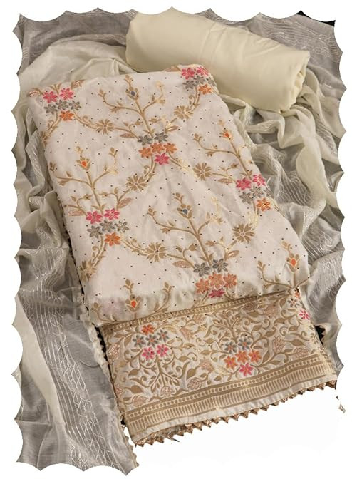 Chanderi Cotton Swirvoski Work Unstitched Salwar Suit Dress Material With Chanderi Embroidery Work Dupatta